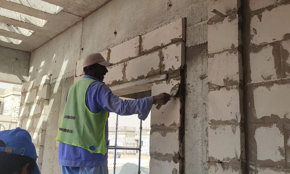 After block work, plastering is applied to provide a smooth, protective surface. Plaster protects walls from moisture, improves durability, and enhances visual appeal. It also prepares surfaces for painting and finishing works.